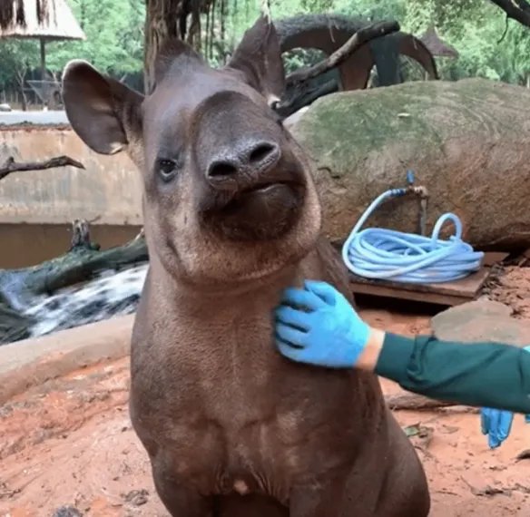 近日,一动物园的账号发布了不少有关“巴西貘”的视频,引发网友关注。饲养员给这些巴西貘挠脖子,它们都是一副享受的模样。有网友表示:“第一次知道这玩意儿原来叫巴西貘,虽然长得东拼西凑的,但看多了感觉还挺萌。”